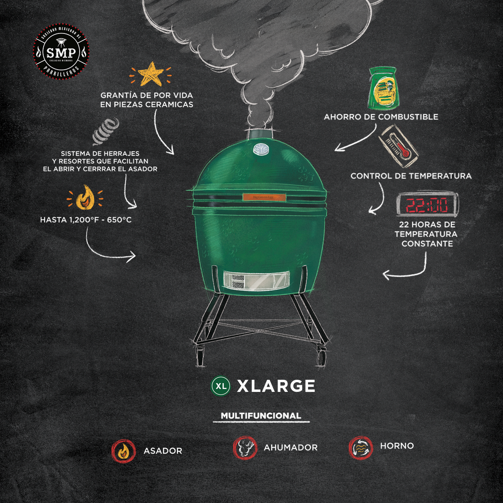 La parrilla Big Green Egg es un sistema de cocina outdoor mundialmente aclamado por sus alcances y resultados culinarios, especialmente como asador para carne, parrilla, ahumador, rostizador y horno que han deleitado a parrilleros aficionados y profesionales durante más de 40 años.