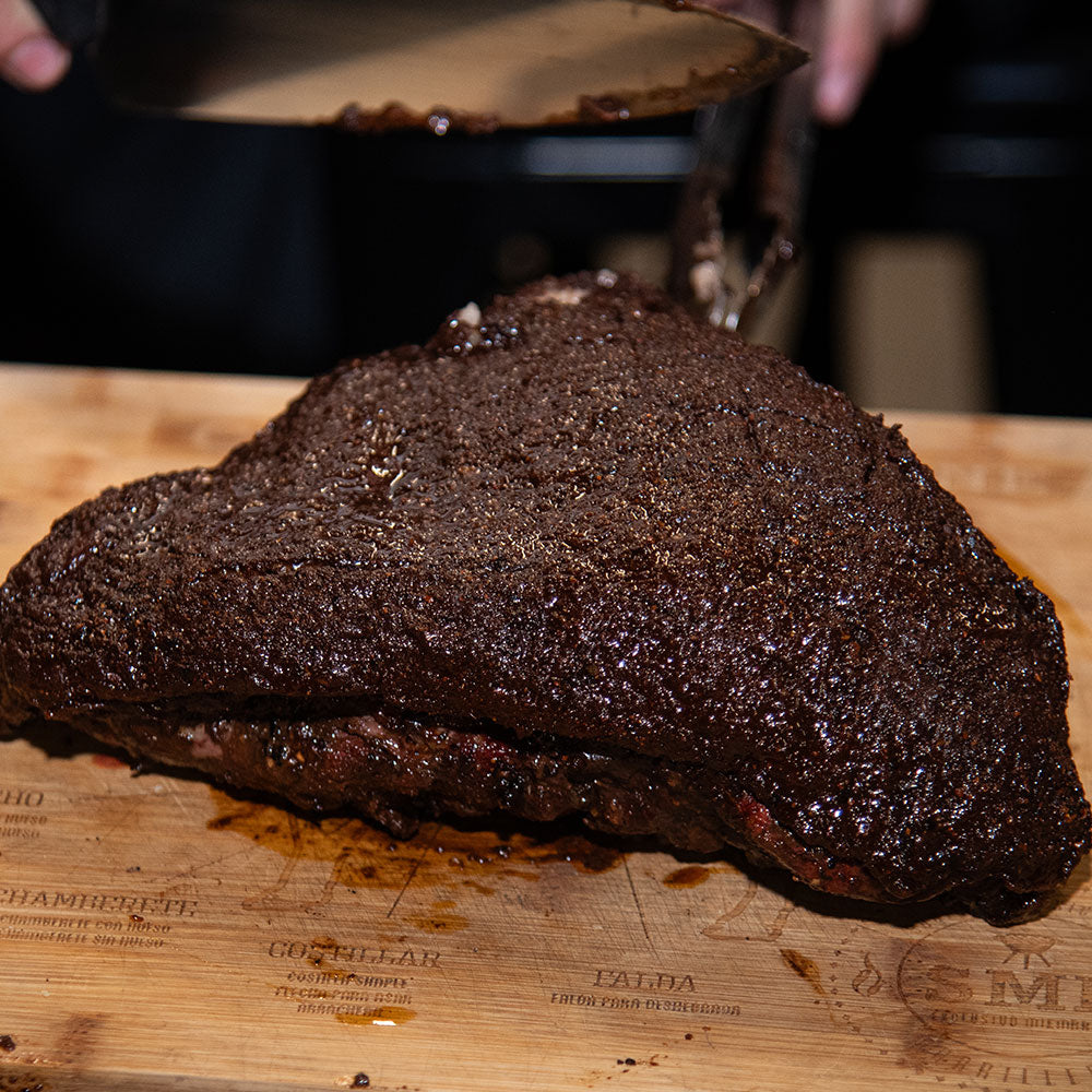 Picaña ahumada en costra de cenizas y café.