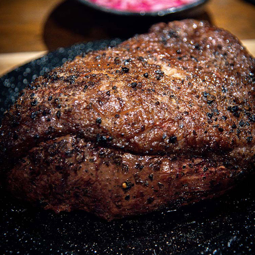 Manhattan (Pieza basica de new york) rostizado con costra de ajo y tomillo.