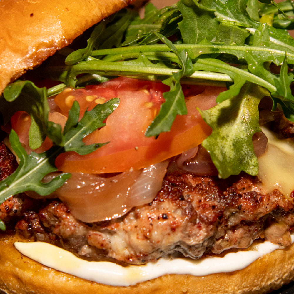 Hamburguesa de picaña con aderezo de jalapeño asado y queso cheddar
