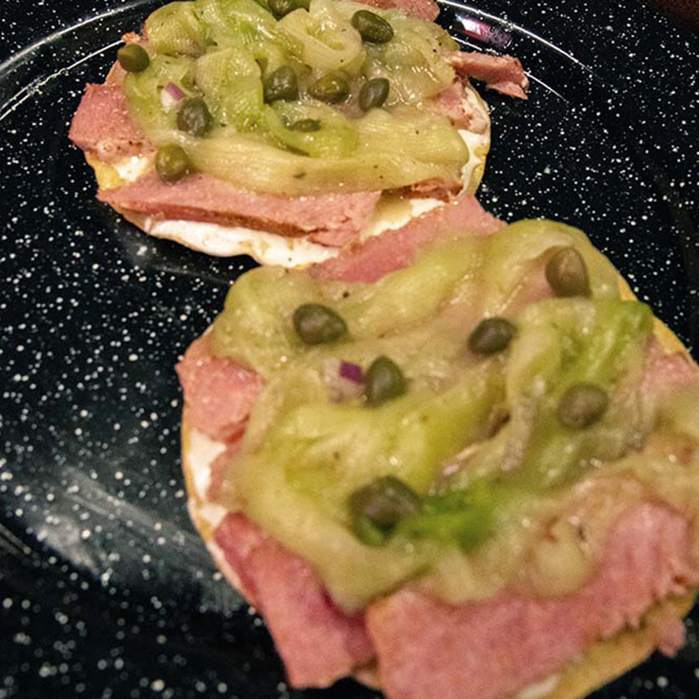 Tostada de atún ahumado en tabla de cedro con ceniza de habanero.