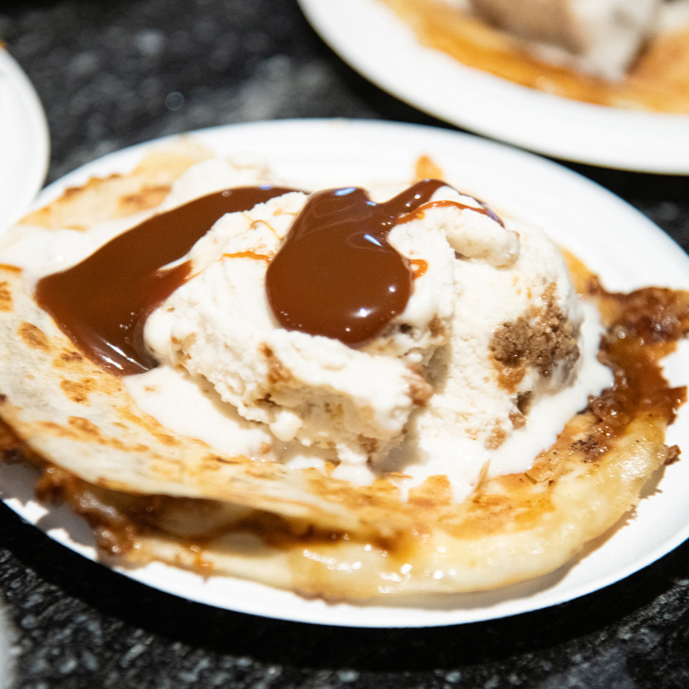 Taco de carne asada con cebollas asadas, salsa negra de habanero y cremoso de aguacate.
