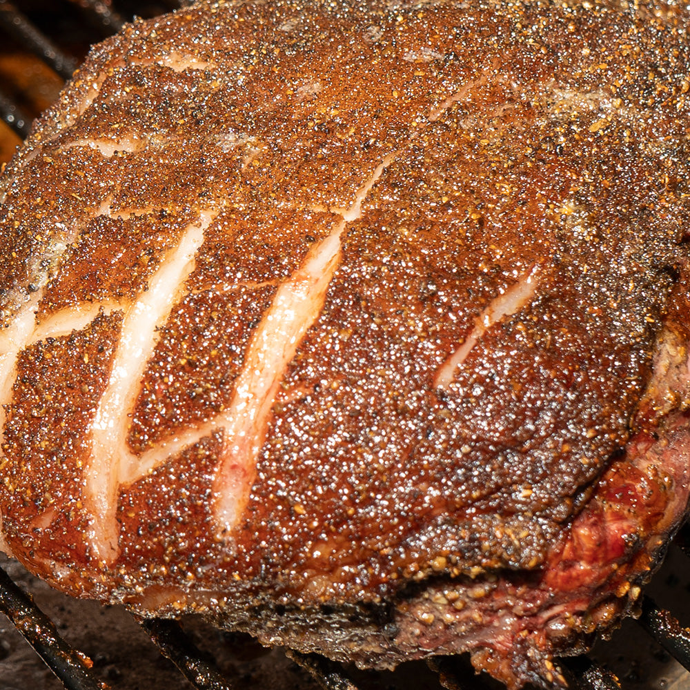 Picaña con mantequilla vaquera y vegetales a las brasas
