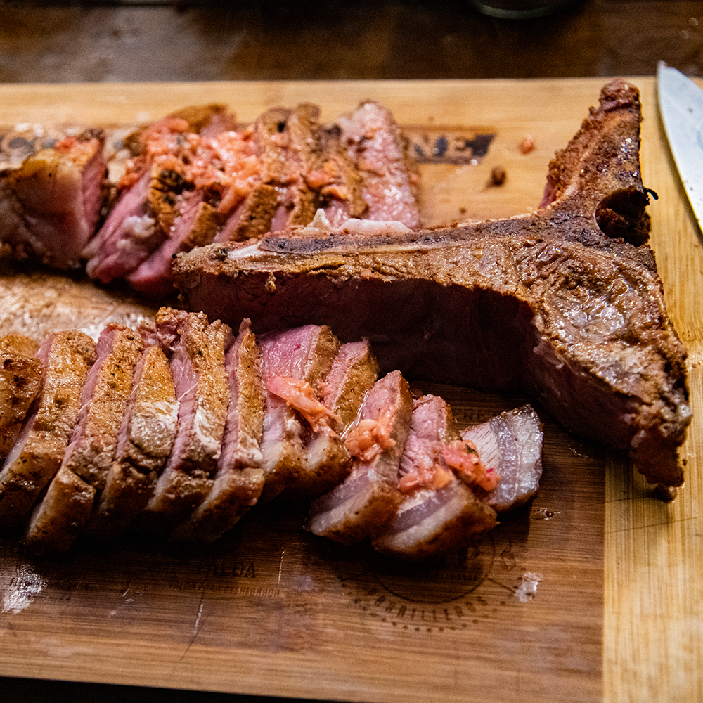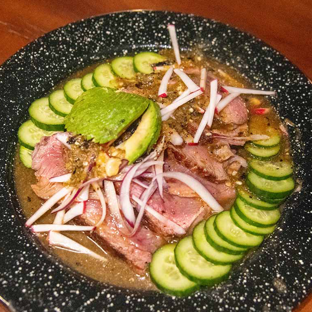 Ribeye de 1.5 pulgadas en aguachile rojo.