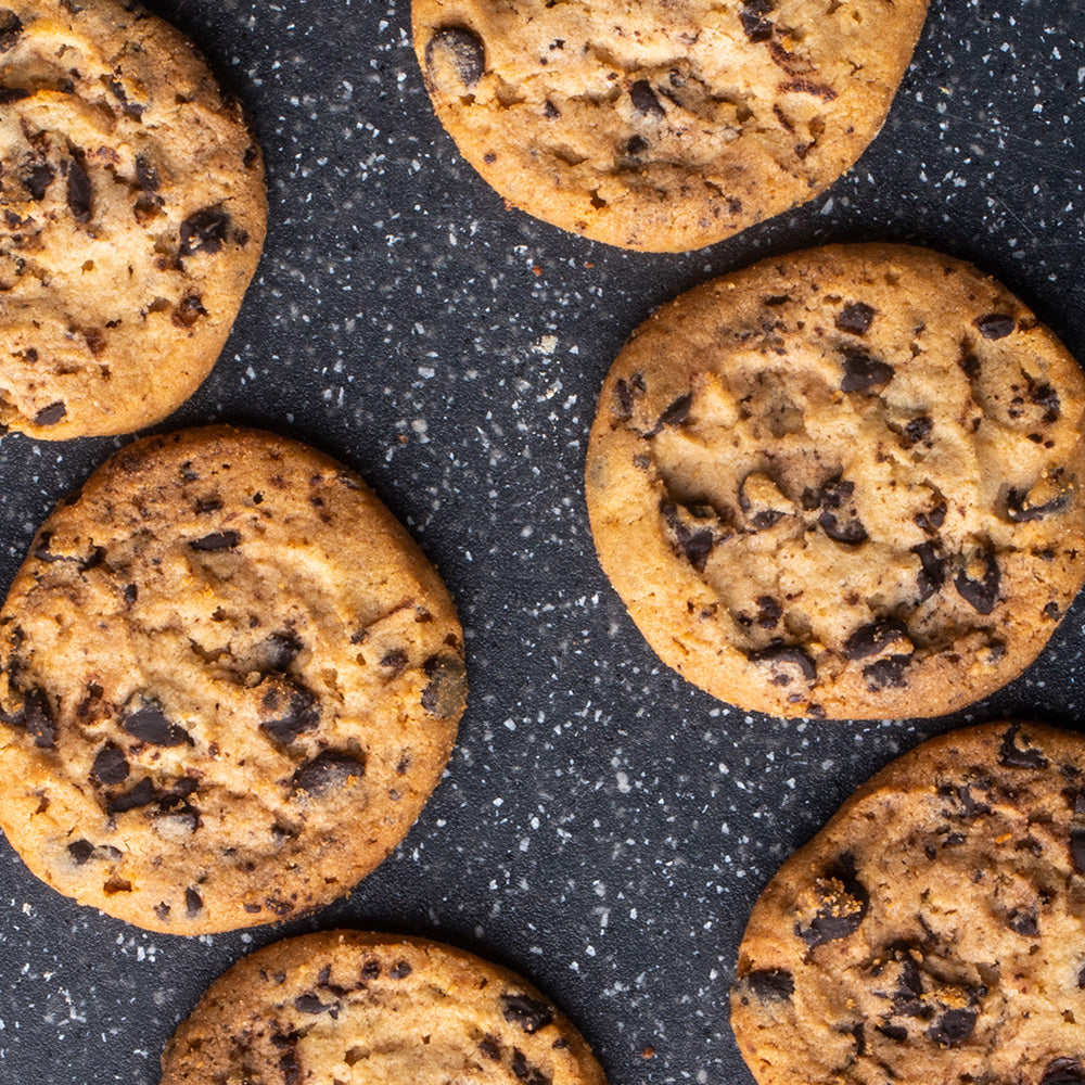Galletas de chips de chocolate asada rellena de helado y compota de frutos rojos