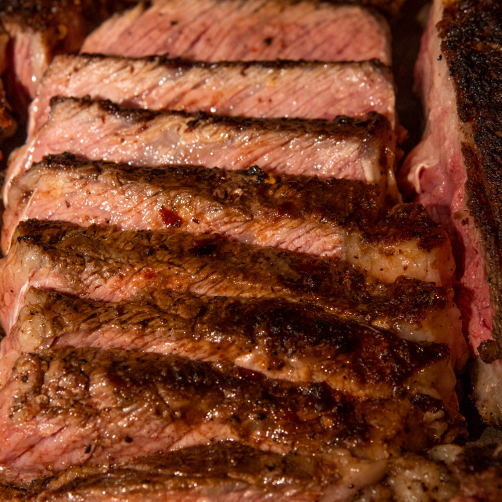 Rib Eye 2” sellado inverso con brocha de romero , limón y rub base líquida