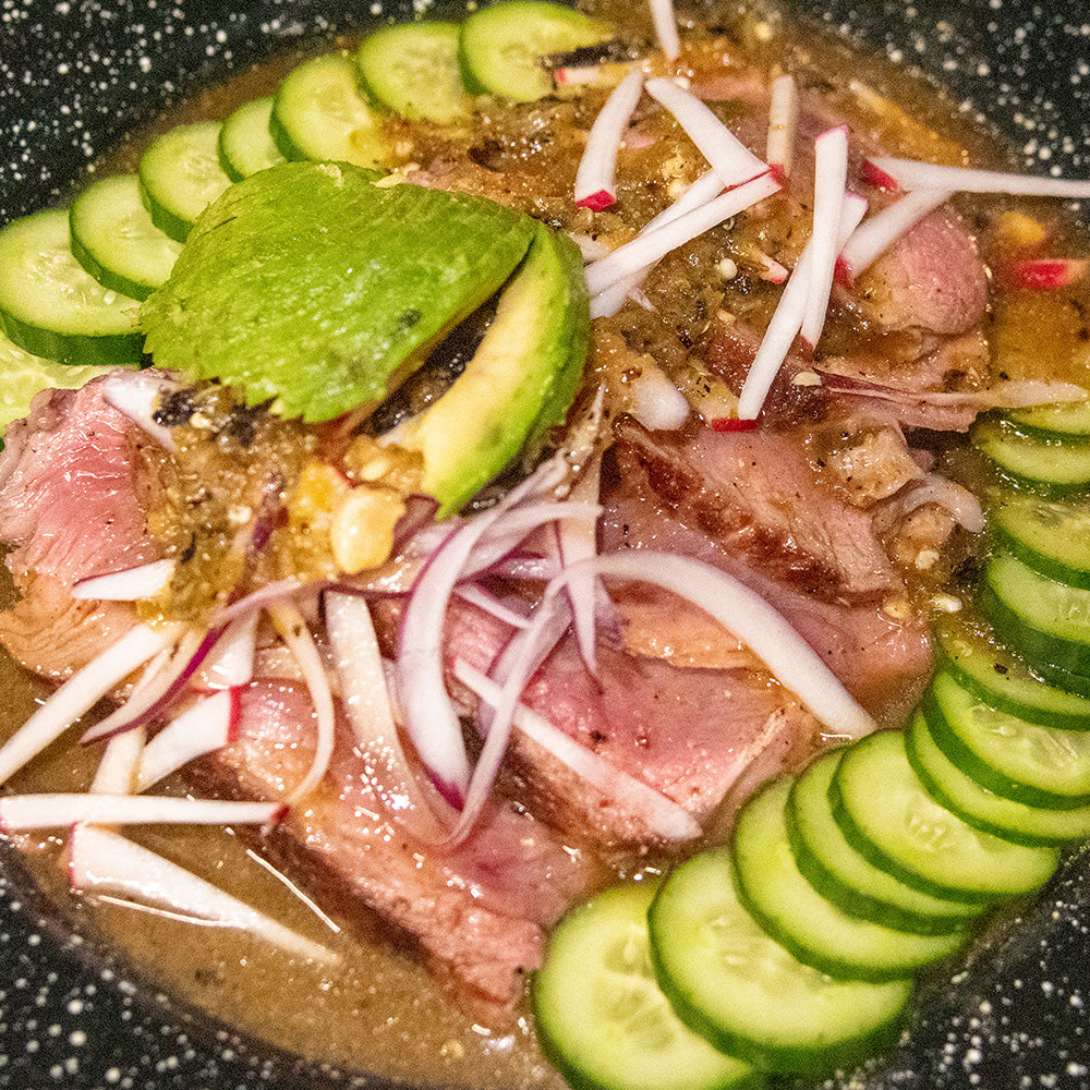 Ribeye de 1.5 en aguachile cítrico de habanero tatemado.