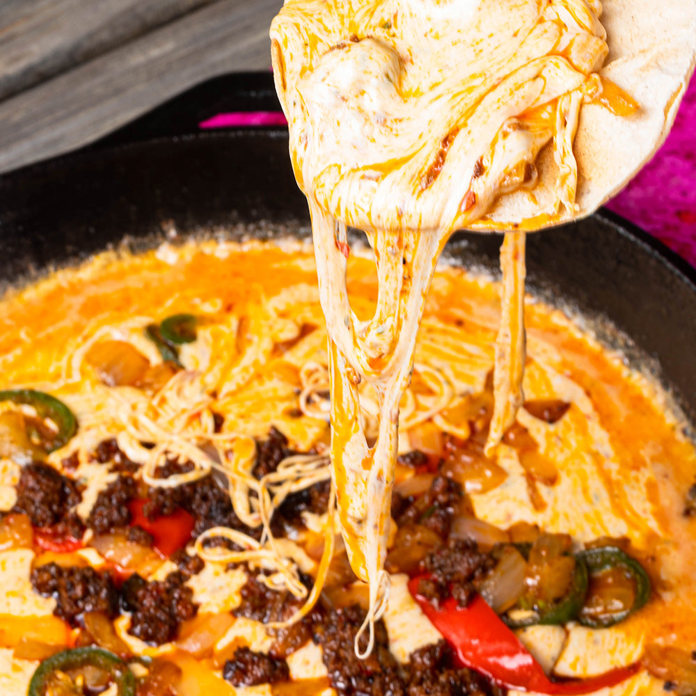 Queso fundido de chistorra y diezmillo (con tortilla de harina)