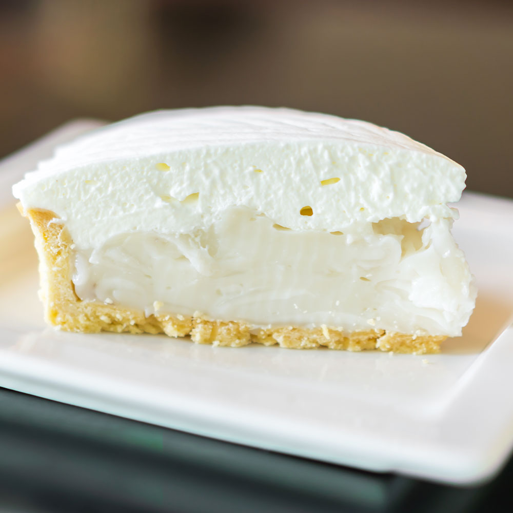 Cheescake de coco con almíbar de lima ahumada.