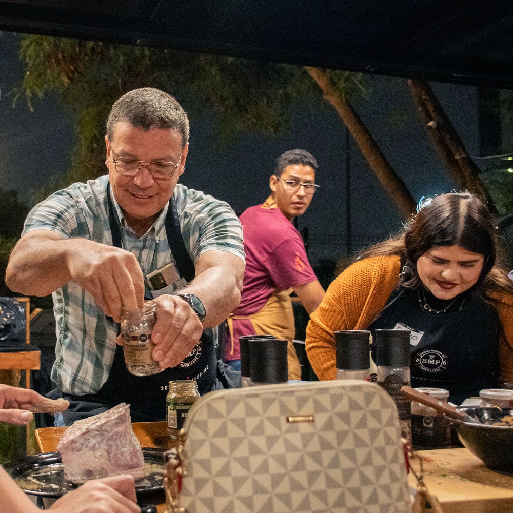 La carne asada no era un evento tan cotidiano en su hogar, por lo que cada vez que se encendía el asador, lo disfrutaba mucho, lo que incrementaba su interés por la cocina al aire libre. Su acercamiento con la SMP ocurrió cuando se abrió el Capítulo Mérida en 2018 y fue invitado a asistir a un curso de “Noche de Parejas” como participante. La energía, dinámica y experiencia de la velada le parecieron sorprendentes y sumamente diferentes, por lo que posteriormente se unió al staff para apoyar en los cursos que se impartían semana a semana.