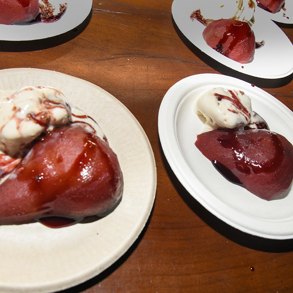 Pera horneada rellena de queso azul con nuez y miel de abeja Smp.